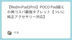 Tablet-タブレット 【REDMI Pad 2購入検討】結論『POCO Pad』を買おう【POCO Pad所有者】 あなたXiaomiの『Redmi Pad 2』が気になるコスパがいいのか知りたい自分の用途にスペックが足りているかな?ベルぶっちゃけ、ほとんどの人は『POCO Pad』を買う方が満足度が高いですSIM不要なら『POCO Pad』の方がコスパ... 2025.09.15 2025.09.28 Tablet-タブレット