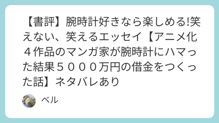 Thinking-考える力 【書評】腕時計好きなら楽しめる!笑えない、笑えるエッセイ【アニメ化4作品のマンガ家が腕時計にハマった結果5000万円の借金をつくった話】ネタバレあり あなた腕時計は好きだけど、以前ほど買う意欲がない人生に張り合いがなくなってきた腕時計のローンを組むか悩んでいるベル『アニメ化4作品のマンガ家が腕時計にハマった結果5000万円の借金をつくった話』は、腕時計の魅力をあらためて教えてくれます本書... 2025.10.11 2025.10.13 Thinking-考える力Watch-腕時計
