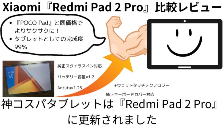 Tablet-タブレット 【REDMI Pad 2購入検討】結論『POCO Pad』を買おう【POCO Pad所有者】 あなたXiaomiの『Redmi Pad 2』が気になるコスパがいいのか知りたい自分の用途にスペックが足りているかな?ベルぶっちゃけ、ほとんどの人は『POCO Pad』を買う方が満足度が高いですSIM不要なら『POCO Pad』の方がコスパ... 2025.09.15 2025.09.28 Tablet-タブレット